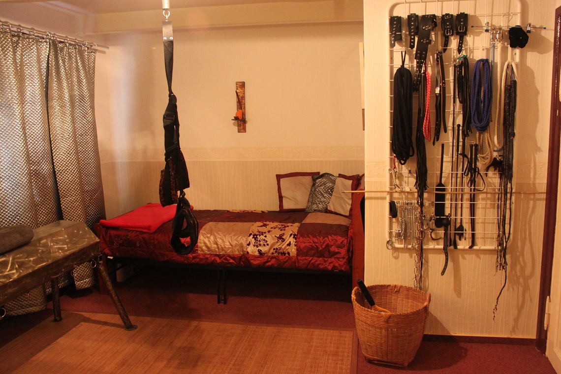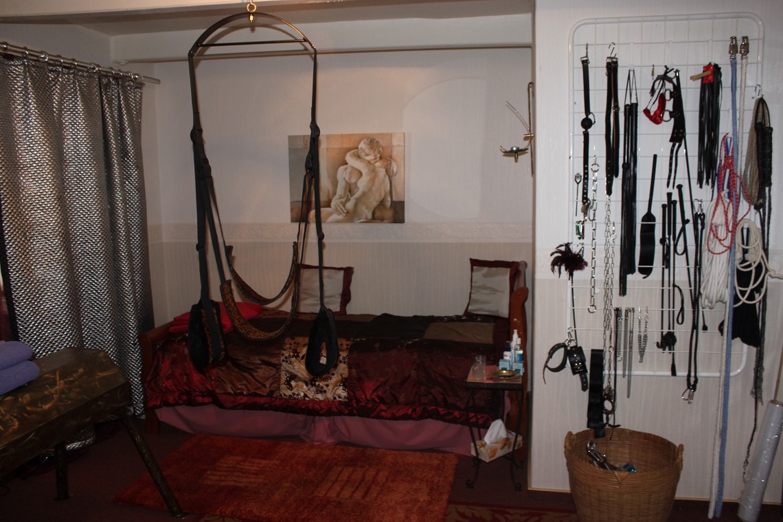Im freien Raum sowie am Einzelbett können Liebesschaukel oder verschieden Stangen, Seile usw. in der stabilen Deckenbefestigung aufgehängt werden. Karabiner, Seile, Spreizstangen und diverse Utensilien sind vorhanden. Selbstverständlich achten wir streng auf optimale Hygiene und Desinfektion der Flächen und Utensilien bei jedem Gästewechsel. |