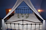 Das rustikal geflieste Eßzimmer grenzt an die Ledersitzecke im hinteren Bereich des Raumes an. Farb-TV, DVD-Player, Satelliten-Receiver und Mini-Hifi-Anlage sind vorhanden. In allen Räumen sind die Fenster sind mit Jalousien oder Rollos ausgestattet, die den Schutz der Privatsphäre unserer Gäste zu jeder Tageszeit diskret und effektiv garantieren. | |||||||||||||||||